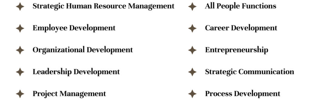 Liz lives by the quote, “Turn obstacles into opportunities.”From the beginning, Liz knew she wanted to work with, help, empower, and uplift people and organizations to reach their full potential. Growing up in an entrepreneurial family, she saw first-hand that when individuals feel valued and when we develop both people and organizations by equipping them with the tools, approaches, and knowledge to succeed, obstacles become opportunities, goals become realities, and experiences become knowledge.With a rich background in building organizations, people functions, human resource management, employee and organizational development, process development, project management, leadership, and strategic communication within startups, small businesses, organizations, boards, educational institutions, and more, Liz is your go-to HR and Career Strategist.Education